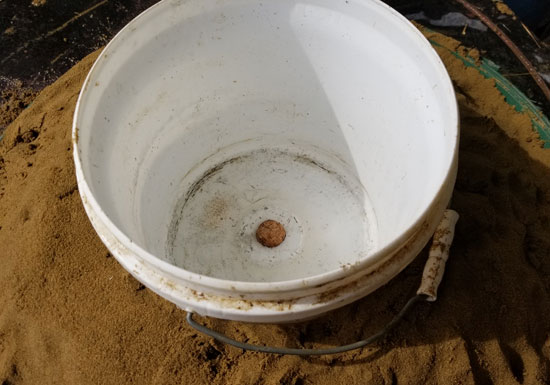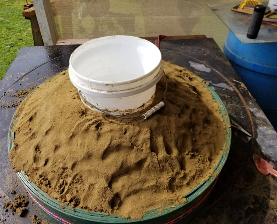 This photo below shows the sand pit covering the entire dish and forms up around the pail. To remove the pail give it a slight turn and it will come free of the sand cleanly.